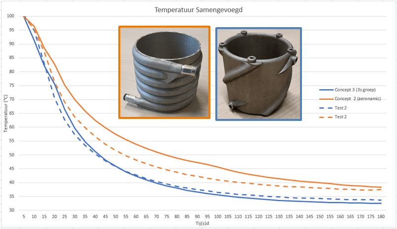 • Result: reduction of average temperature and pressure drop (original was not measured). The students came up with a completely different concept than the Aeronamic engineers, resulting in a much lower temperature and a lower pressure drop.