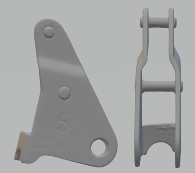 The thread guide has been scanned as it contains many different nooks and crannies. Several scanners have been tried, but the 3D scanner Artec Space Spider gave the most detailed result, shown in the image below. For comparison, the part was also measured with a caliper and retraced in SolidWorks.