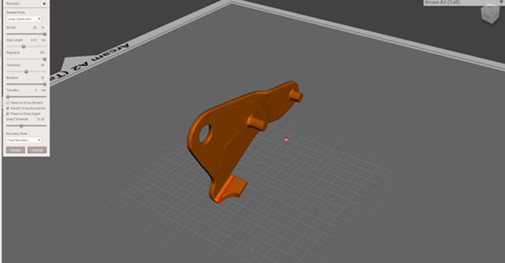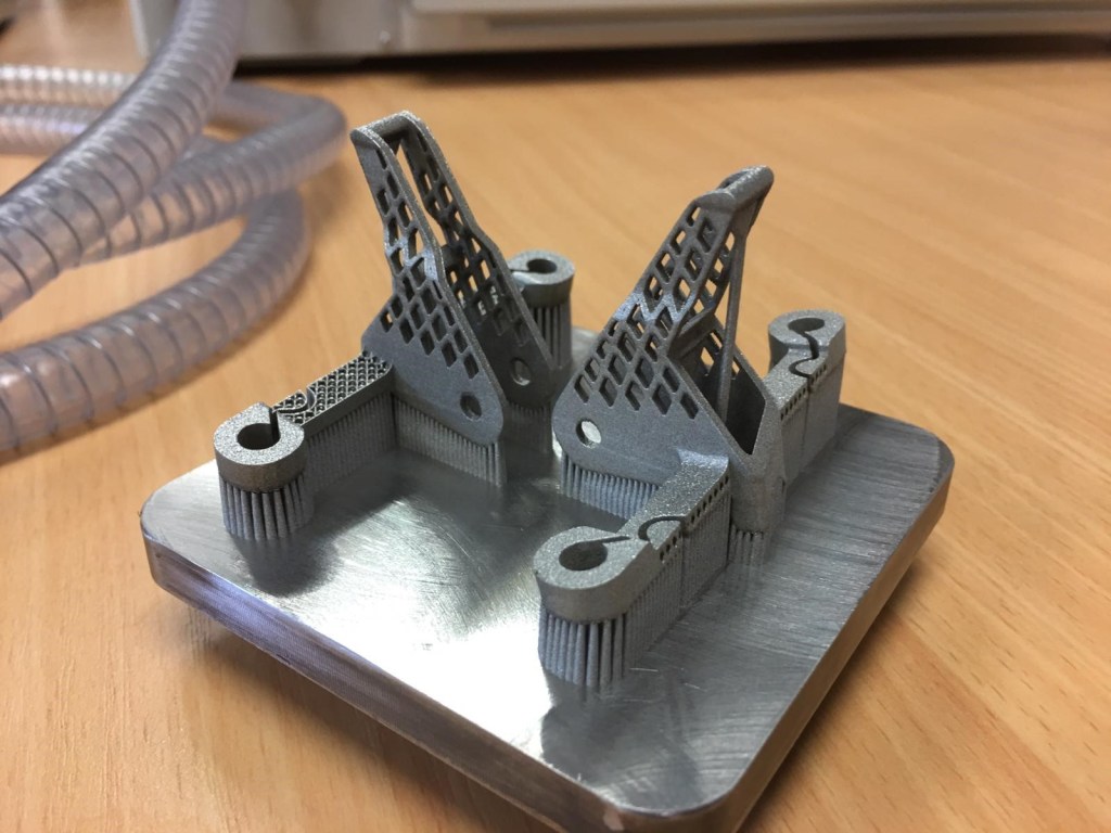 Before printing, the model must be positioned on the build plate. Subsequently, support material must be applied for sufficient heat dissipation and of course to support the model itself. The models are printed in stainless steel 316L with the Concept laser Mlab Cusing SLM printer.