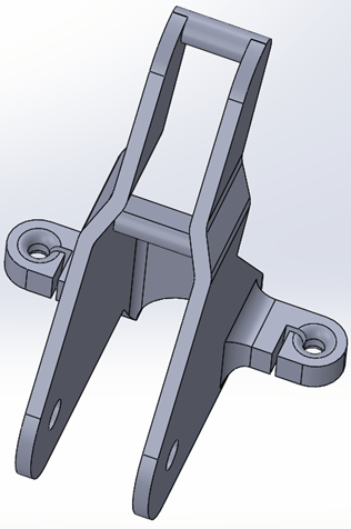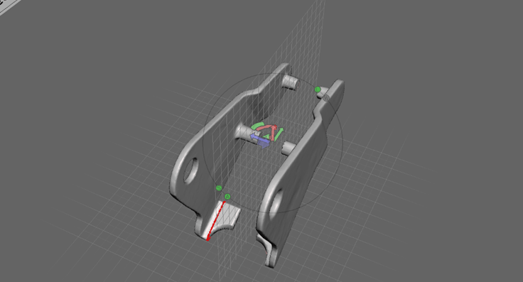 The scan has no defined position and orientation. The part is positioned in the desired way in Meshmixer. The file was then converted to a .STL so it can be edited in SolidWorks. There, the mdoel is converted into a solid body and the holes have been given the exact size and bent surfaces have been adjusted.