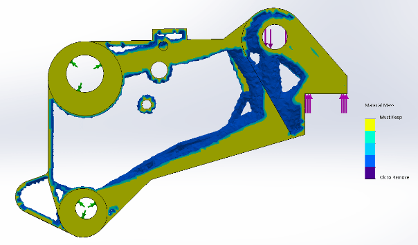 There are software packages in which the maximum outer dimensions of your product are indicated (design space) and where which forces apply. Calculations have been made to find out which forces are acting on the part. These are then entered into the software. The software then calculates where material can be saved because low voltages occur there. In theory, this creates the ideal shape to absorb the forces with as little material as possible. In this case, the Fusion 360 program was used for the topological optimization.