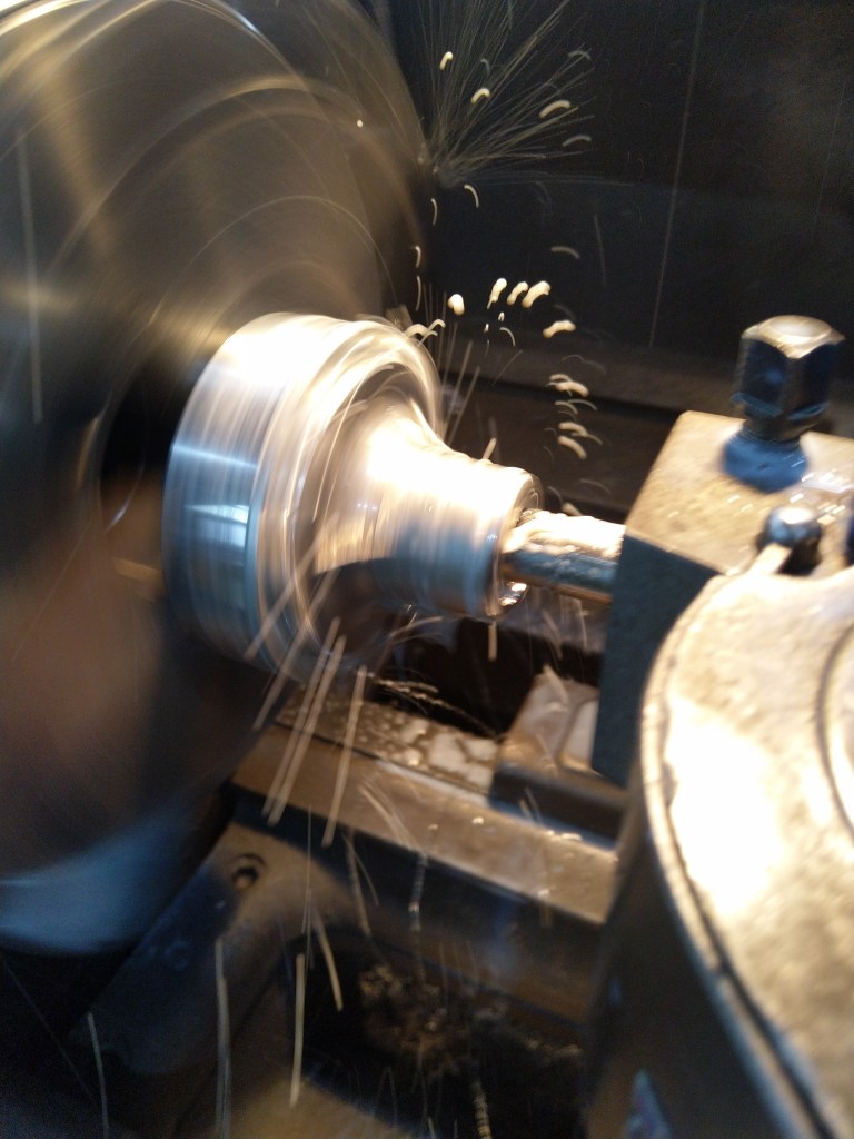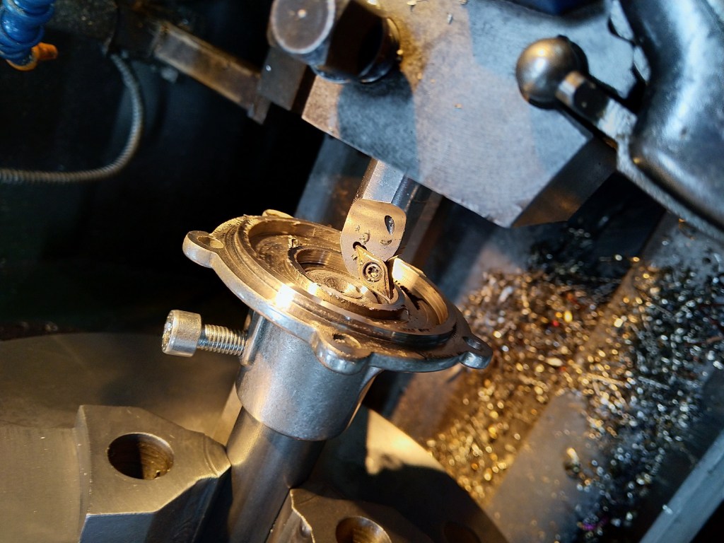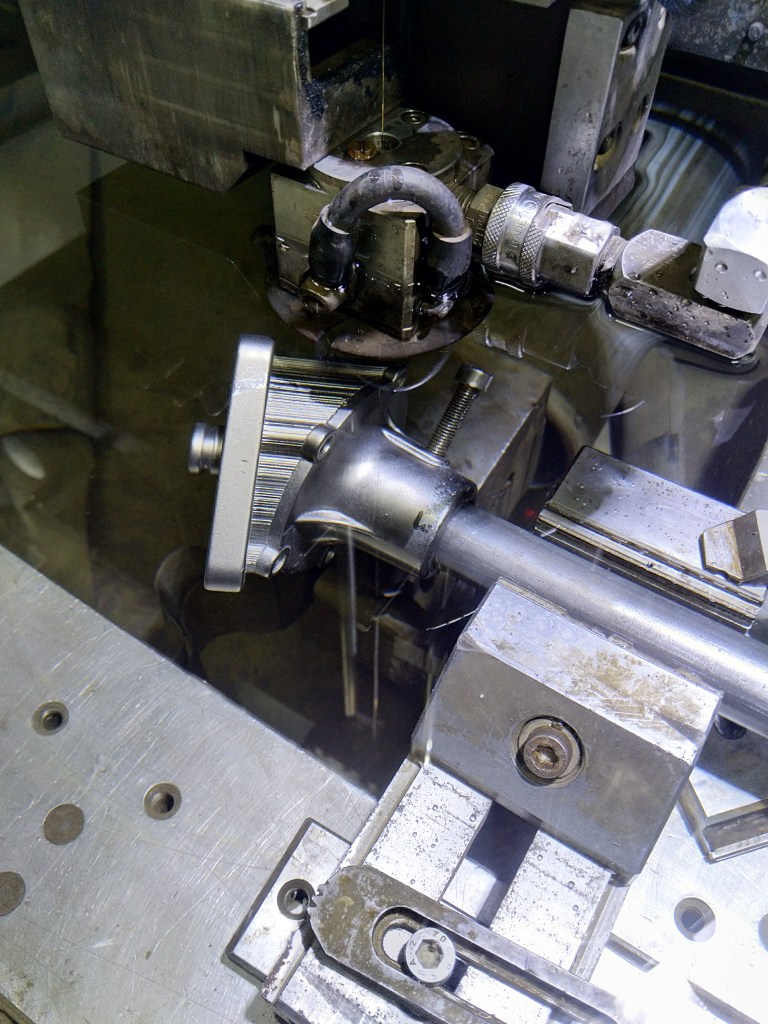 After the powder has been removed, the PCB has been removed from the build plate. This was done at PetersFMI using wire EDM. The remaining support material on the inside was removed with a chisel on a lathe.
